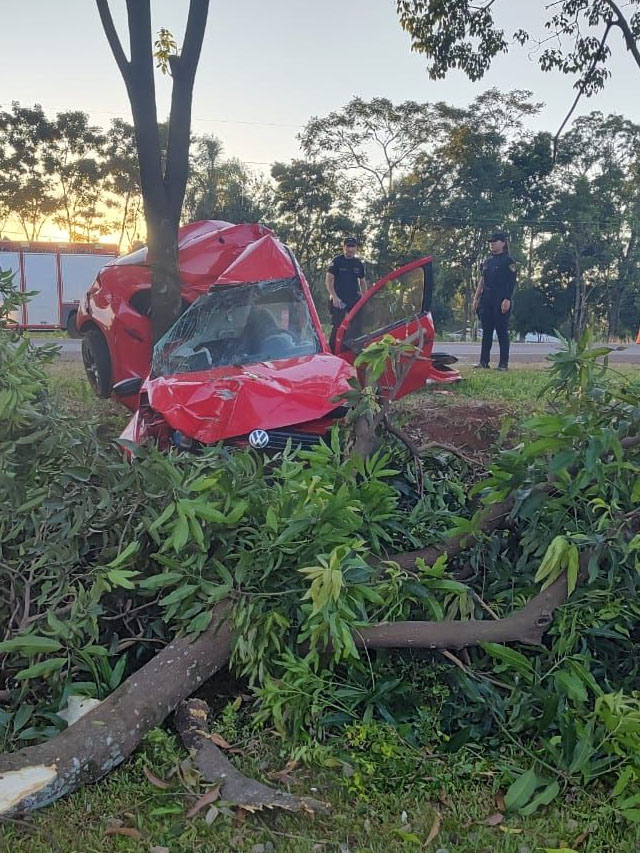 El siniestro se produjo cuando un automóvil Volkswagen Gol Trend, que circulaba en sentido Sur–Norte (Posadas–Iguazú), despistó hacia la banquina e impactó contra un árbol. El vehículo era conducido por Nicolás C., de 25 años, quien viajaba acompañado por Cuba Gimena Daniela, de 21 años.
