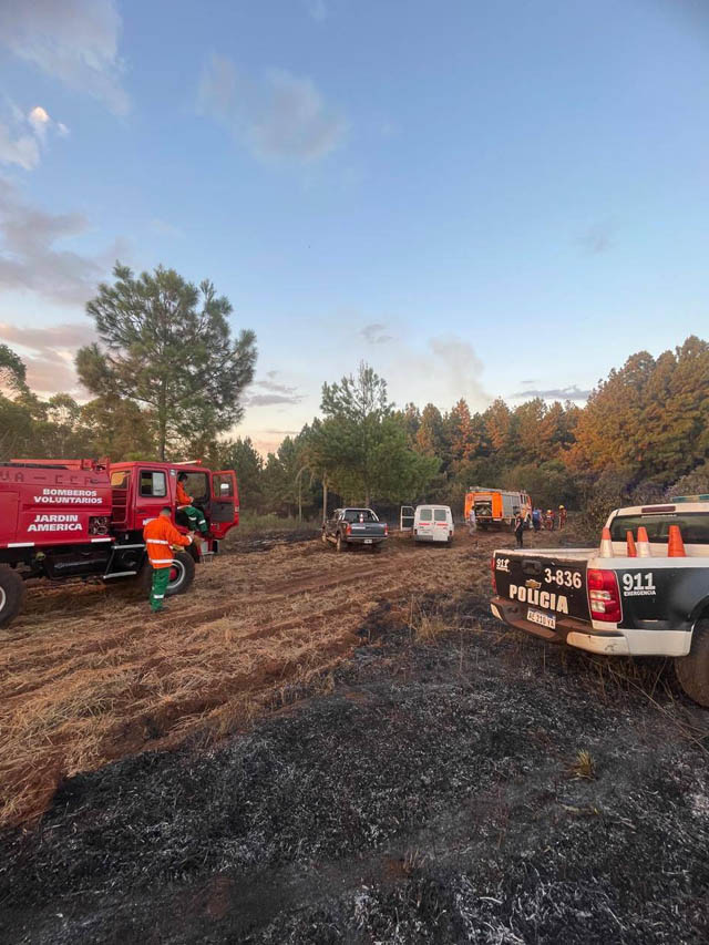 Las tareas de extinción se prolongaron hasta aproximadamente las 3 de la madrugada, momento en el que el incendio logró ser controlado. Según se informó, el siniestro afectó unas 15 hectáreas de malezas, yerbales y pinar.